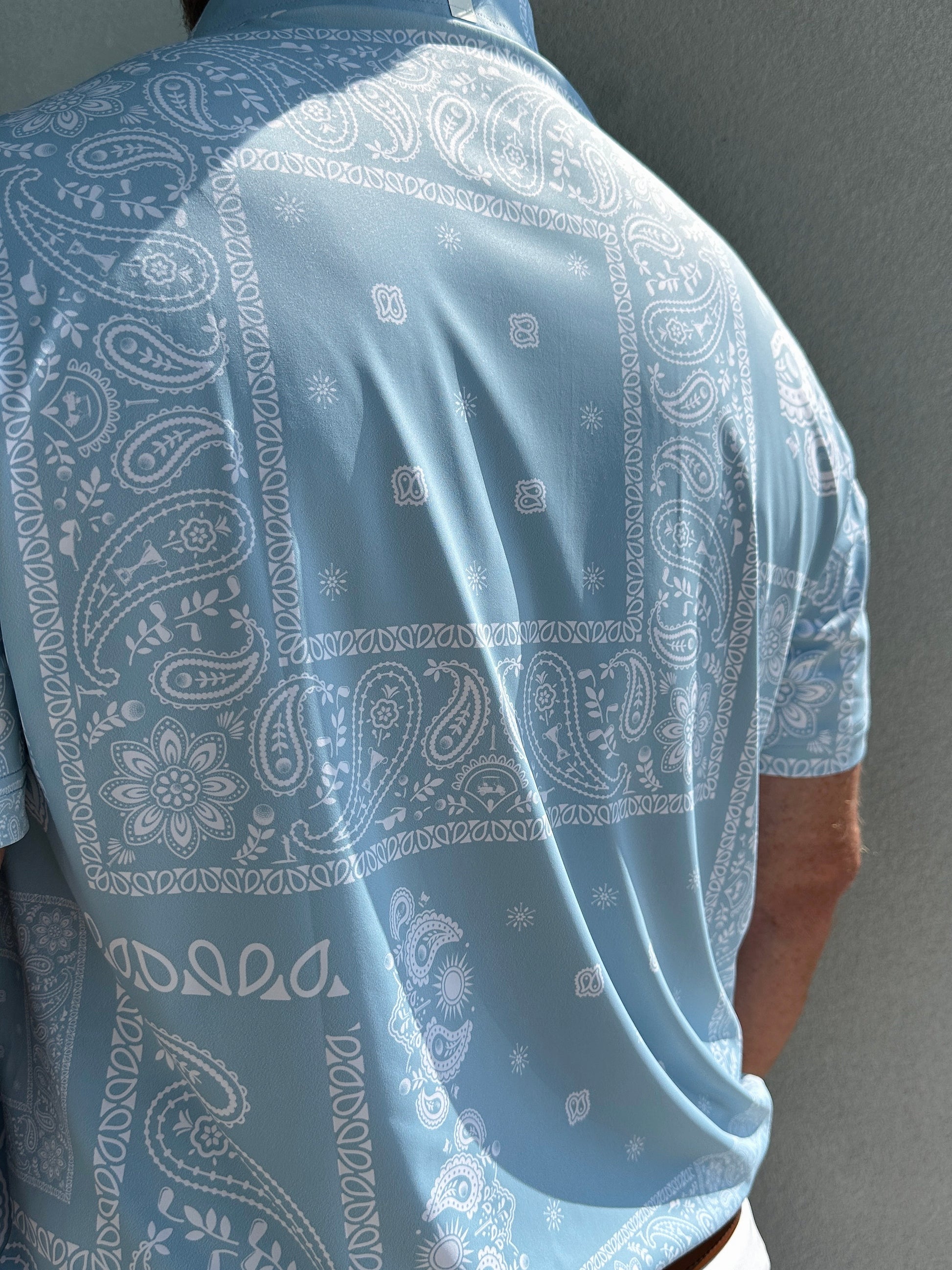 The Hidden Hanky Polo brings a fun twist to classic style with its sleek bandana pattern infused with subtle golf-inspired details. Designed for those who love the game and its culture, this playful polo blends timeless fashion with a wink to your favorite sport. Whether you're on the greens or out with friends, it’s a clever way to show your passion in a stylish, unexpected way. Comfortable and eye-catching, it’s perfect for golfers who like to keep their love of the game delightfully under wraps